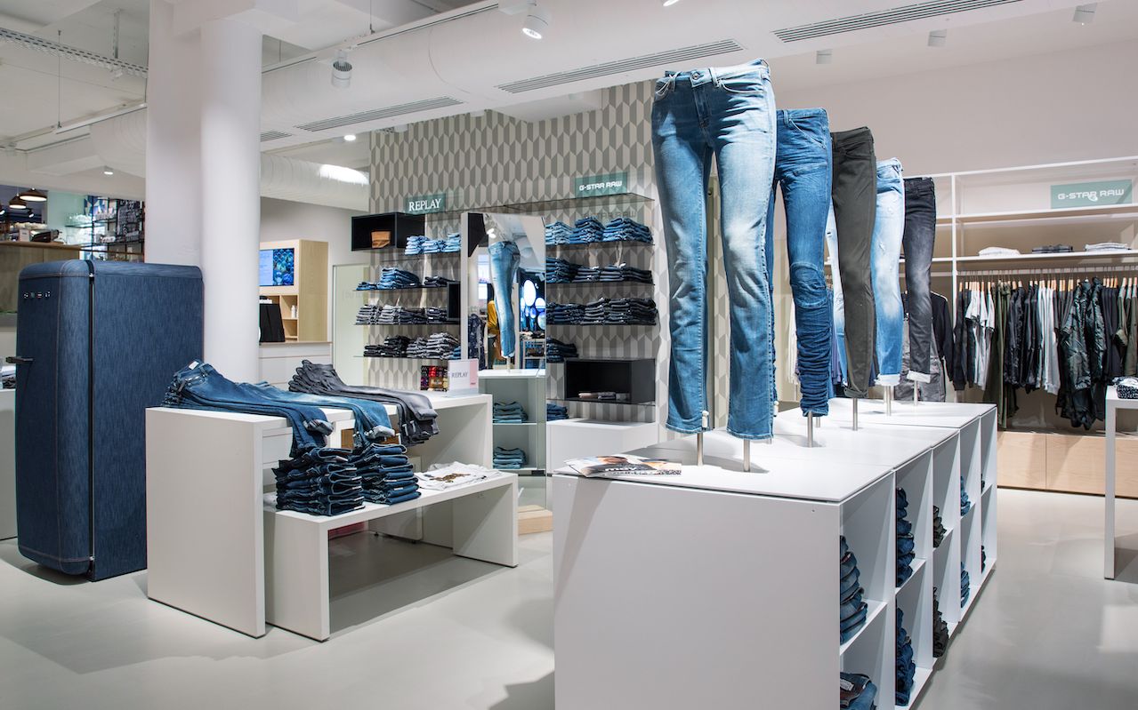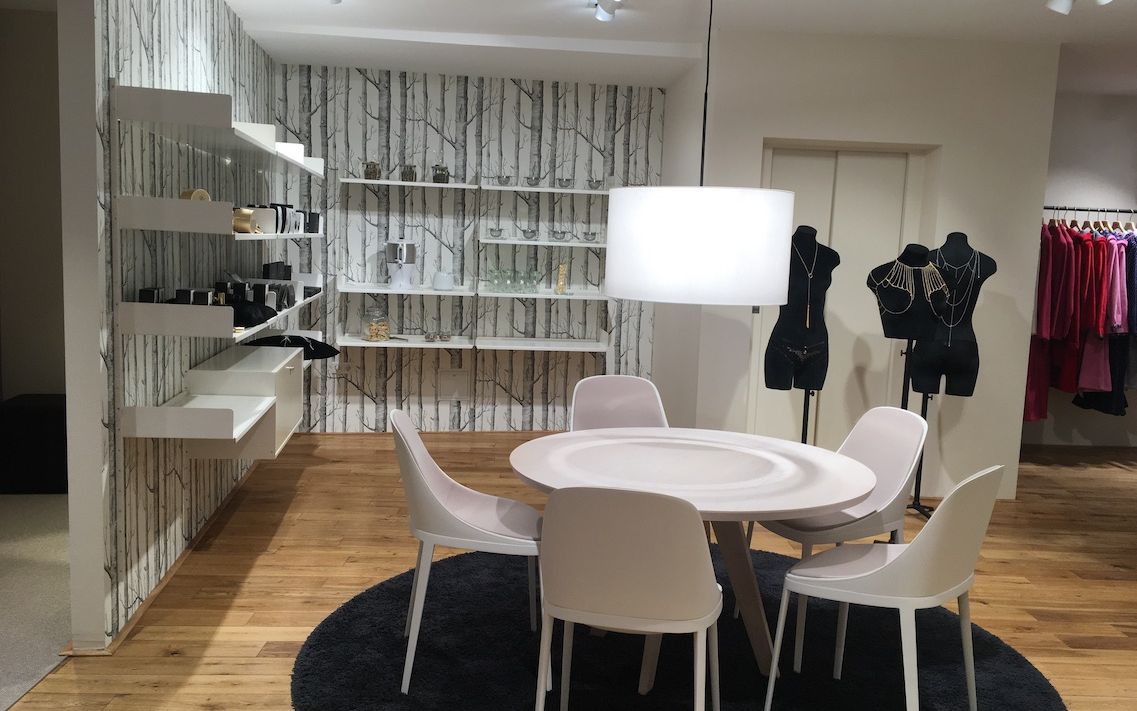 Unter der Federführung von Nathalie Vogelbacher entstand eine Innenarchitektur und ein Styling mit abwechslungsreichen Zonen und Bereichen mit intensiven Farben und Materialien. Gemeinsam einigte man sich auf ein durchgängiges Konzept mit skandinavischer Note und Materialien, die diese Handschrift unterstreichen. Die Ladenbau Systeme Kado und Beam von Visplay bilden in Varianten die Grundlagen der Warenpräsentationen, während individuelle Möbel- und Figurengruppen die Mittelräume gliedern und beleben. Einladende Sitzgruppen auf den Flächen und in der Nähe der Umkleiden erhöhen die Verweildauer der Kunden auf angenehme Weise. Zudem bieten die zahlreichen kleinen und großen dekorativen Accessoires viel Raum für Entdeckertouren, ergänzend zur Mode und zum Lifestyle. Viele dieser Kleinmöbel und Accessoires haben wir aus Werkstätten für Menschen mit Einschränkungen zugekauft. Weitere Möbel und Dekoartikel haben wir aus zweiter Hand aufgestöbert, aufgewertet und so in neuem Umfeld präsentiert. Brilliant ausgeleuchtet wurde das Modehaus in Zusammenarbeit mit einem Lichtplanungsteam aus München.