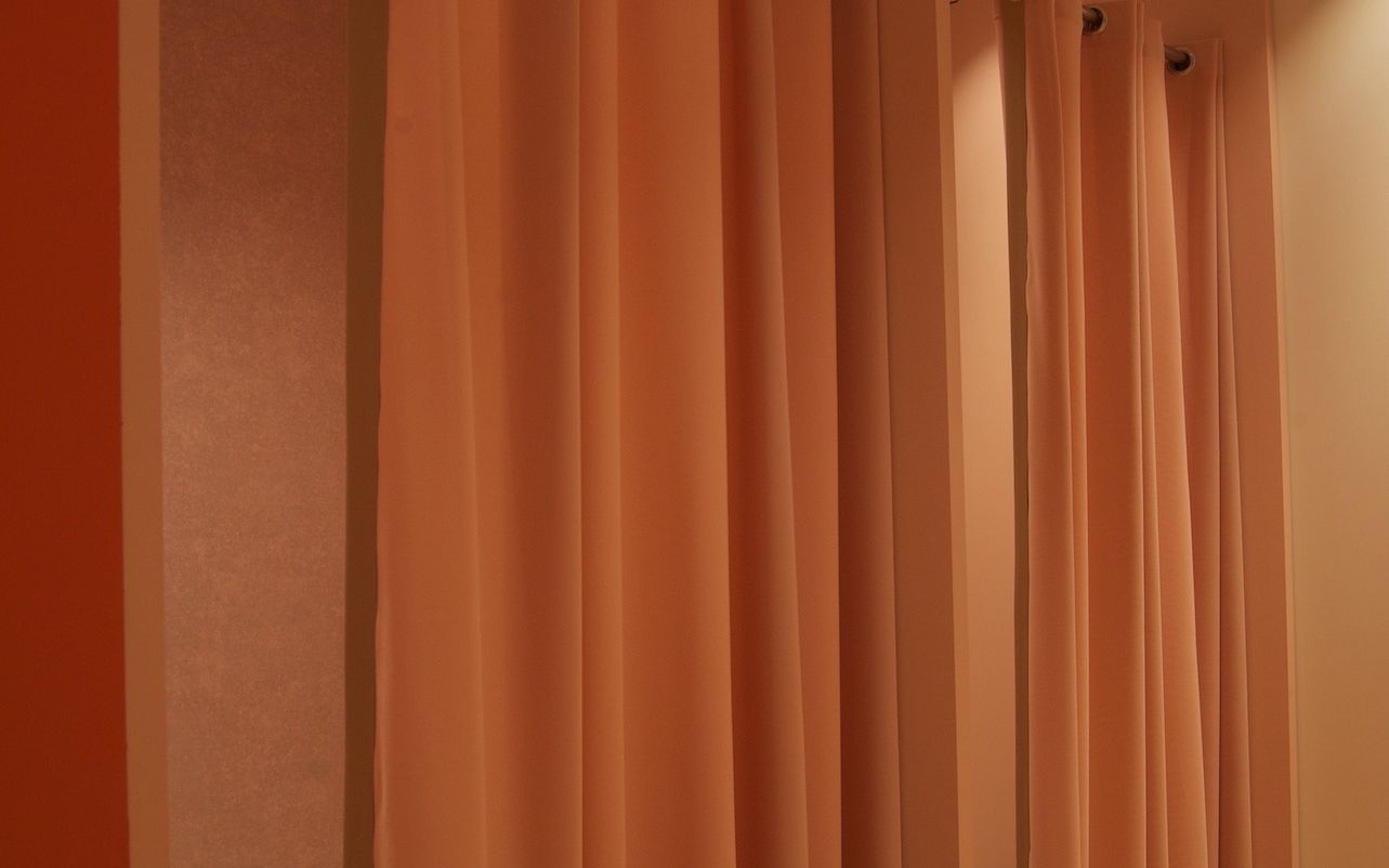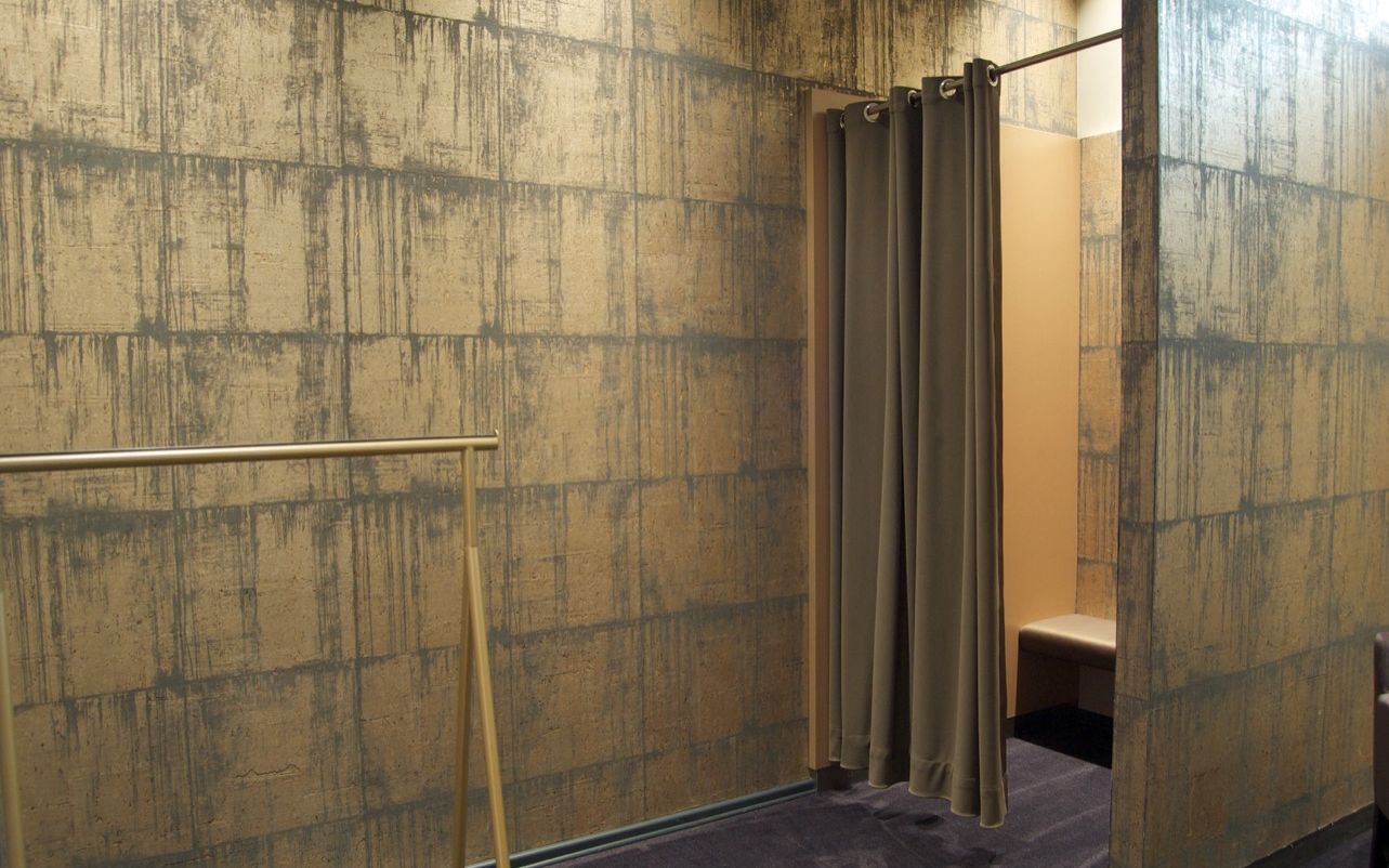 Die Bereiche der Umkleidekabinen werden durch raumhohe, wertige Satinvorhänge gegliedert und ergänzen mit angenehmen Teppichbelägen in einem Kieselton das japanische Ambiente.