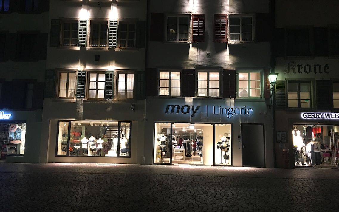 Die Lingerie May konnte sich durch den Umzug aus dem Haupthaus in ein modernisiertes Altstadthaus vergrössern. Vom Auftraggeber wurde ein stilvolles, dezentes und fast schon japanisches Ambiente gewünscht. So hat Nathalie Vogelbacher Innenarchitektur sehr bewußt wenige reduzierte Elementen kombiniert, um dem Thema Lingerie viel Raum zur Wirkung vorzubehalten.
