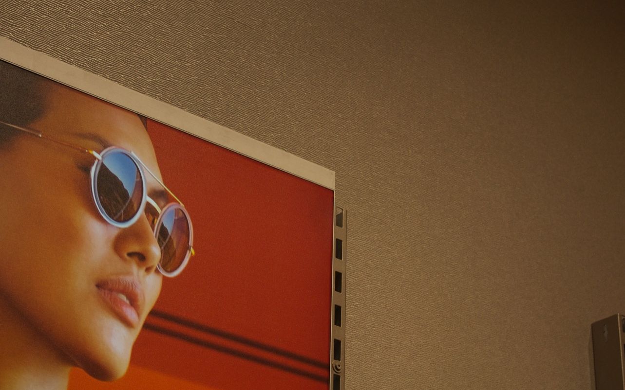 Die naturgeölten Böden aus Eiche und ein horizontaler, sandfarbener Strukturputz bilden den idealen Grundstock des japanisch anmutenden Ambiente. Ergänzt wurde durch schwarz-weiss Tapeten mit stilisierten Bäumen. Im Erdgeschoß wurde ein warmer Braunton zur Akzentuierung eingesetzt, im Obergeschoß Lavendel. Rückwandmontierte Warenträger aus der Serie Beam von Visplay rücken die Produkte in den Vordergrund und im Bereich der Homewear sind es freihängende schwarze Holzstangen an Lederriemen.